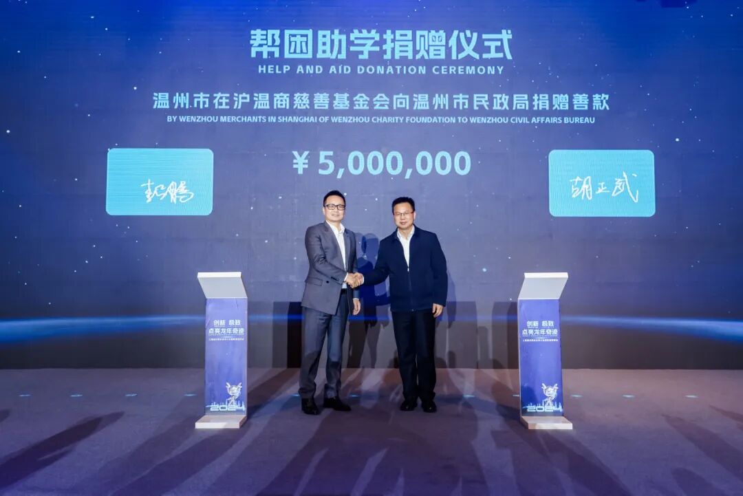 9323彩集团2020年成立温州市在沪温商慈善基金会,受到商会各位会长们纷纷响应,踊跃捐款。基金会聚焦家乡教育、留守儿童、医疗救助等慈善项目,先后捐赠善款结对温州老年食堂、资助身患肿瘤女童就医等等。本次大会上,温州市在沪温商慈善基金会向温州市民政局捐赠500万元善款用于帮困助学,积极响应政府提出“温商同行 筑梦未来”教育帮扶项目,支持相对低收入家庭“1619”接续奋斗计划项目,继续为擦亮"大爱温州善行天下”的金名片上添一份更为浓郁的慈善色彩。