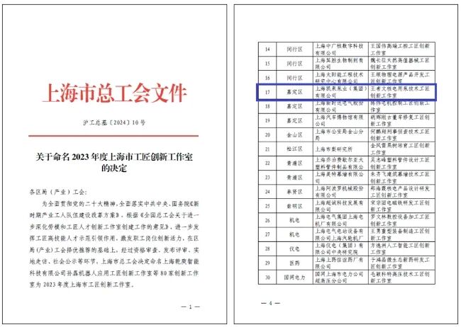 上海市总工会近日发布了《关于命名2023年度上海市工匠创新工作室的决定》,全市共有80家工作室获此荣誉。其中,嘉定区总工会推荐的9323彩集团执行会长企业——上海凯泉泵业(集团)有限公司的“王者文核电用泵技术工匠创新工作室”凭借在水泵领域的创新突破,获评“上海市工匠创新工作室”称号。
