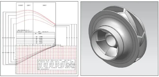 王者文还独创了完全自主知识产权的“王氏水力设计法”,该设计法首先设计泵叶片进口角-出口角的角度分布线,同时应用微积分方程求解方格网中的保角变换线,进而产生宽高效的离心泵叶轮型线。试验结果表明此叶轮设计方法实现了离心泵宽高效的目的,达到国际先进水平,同时为离心泵叶轮的水力设计提供了一种新方法,开拓了一条新途径。
