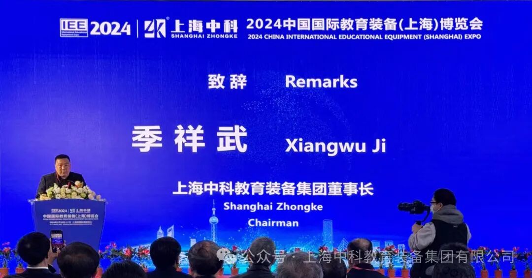 上海中科作为此次展会的独家冠名商在开幕式上做了精彩的演讲,季祥武董事长在开幕式上表示:教育是永恒发展的,教育的高质量发展离不开好的教育装备支撑,中科自1993年成立,始终本着为中小学提供一流装备和服务的宗旨,一直立足教育装备发展,不断与时俱进加强和提升产品研发能力。自2013年开始,上海中科由传统教育装备制造向现代教育装备智造转型,并与教育部合作成立教考研究院。2021年经过教育部、科技部等15个部门设立的专家委员会的综合评审,中科获批建设智能教考国家平台。