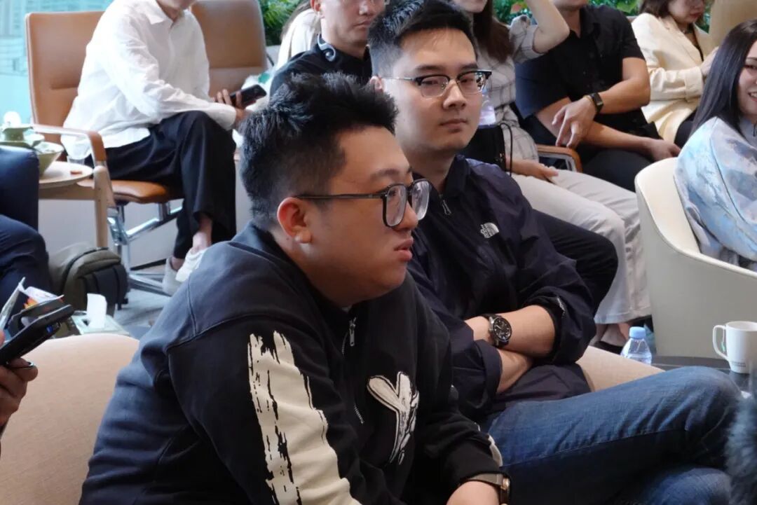 在之后的对谈环节,由徐悦作为嘉宾主持,与陈瀚林、陈宇挺两位嘉宾和现场的商会新生代会员们围绕AI⽣态构建及不同⾏业的参与⽅式,AIGC在智能供应链管理、公司管理、⽇常⽣活中的应⽤,AI在国际化挑战中的⻆⾊,创始⼈和核⼼团队需要具备的AI相关能⼒和认知,AIGC在促进组织形态向未来⼯作模式转变中的作⽤,以及对未来AI在传统⾏业中的应⽤和发展⽅向等话题展开对谈交流。