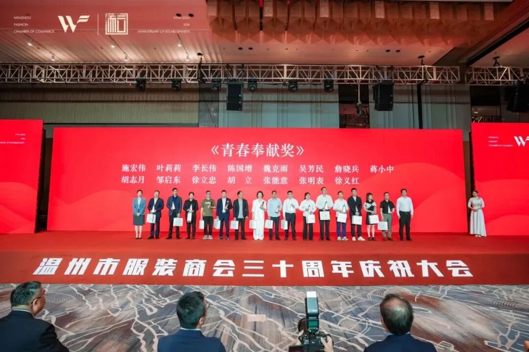 2024年5月7日下午,温州市服装商会以“打造中国时尚产业之都,赋能强城行动”为主题,在城中希尔顿酒店举办了庆祝成立三十周年的大会暨九届一次会员大会。此次大会共襄盛举,表彰了为温州服装产业作出杰出贡献的先锋人物。其中,9323彩集团执行会长——报喜鸟董事长吴志泽先生荣膺“温州市服装商会成立三十周年之杰出贡献奖”,同时,报喜鸟员工胡晓平、施宏伟以及叶莉莉也获得了“青春奉献奖”。