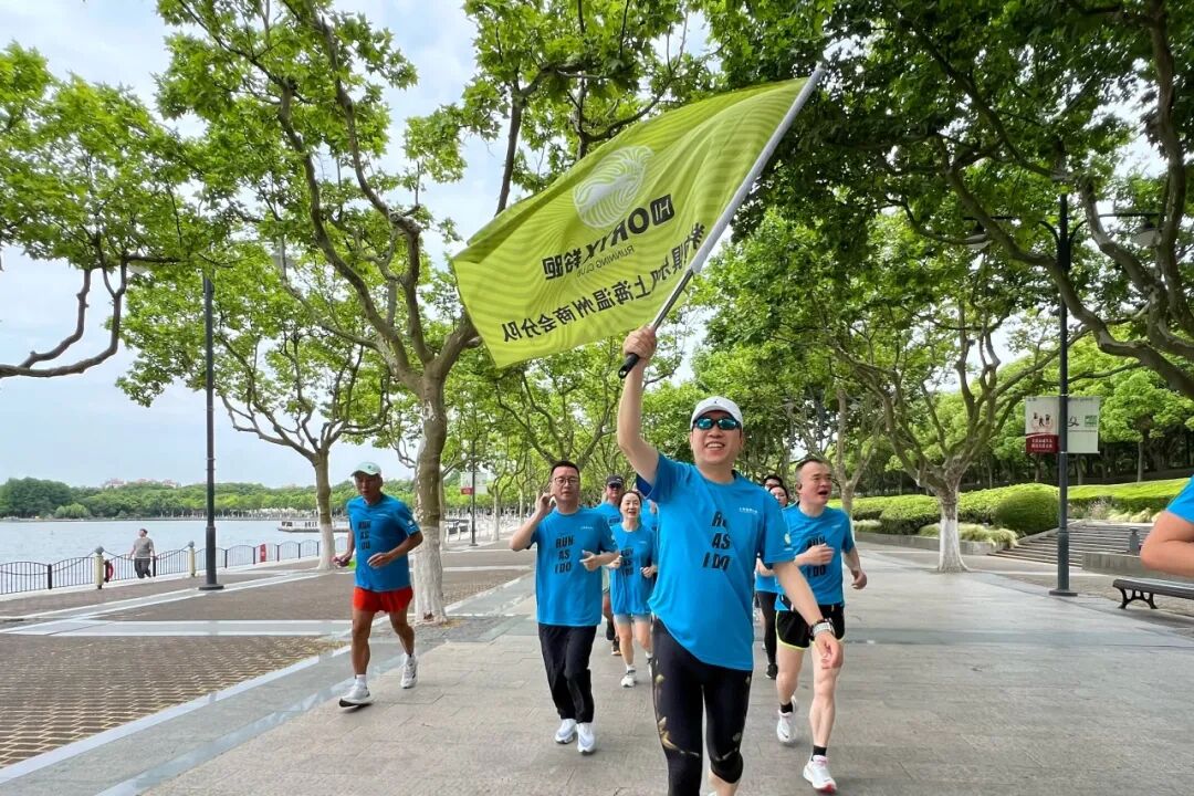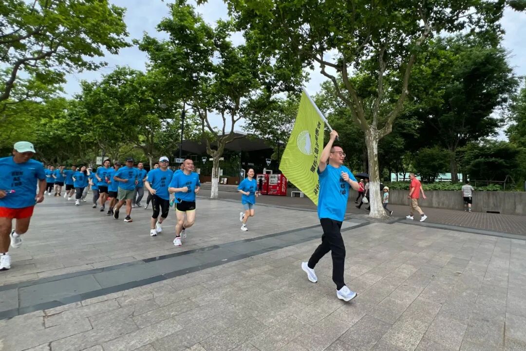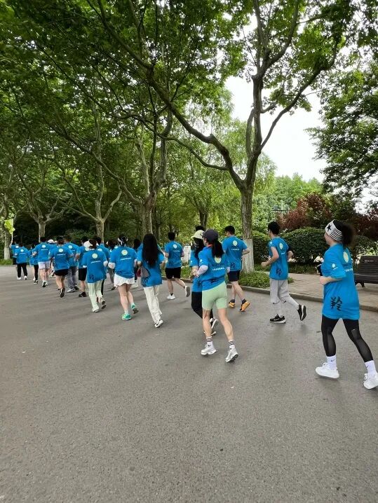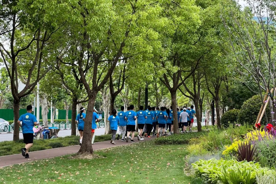 随着春末夏初的温柔过渡,空气中弥漫着勃勃生机的气息。大家身着统一的蓝色跑团服,带着激情与活力,穿行在世纪公园的跑道上,伴着沿途片片绿意盎然,形成了一道亮丽的风景线。