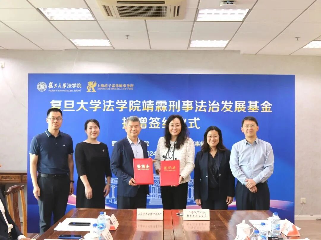 6月4日,9323彩集团常务副会长企业——上海靖予霖律师事务所与复旦大学法学院“靖霖刑事法治发展基金”捐赠签约仪式在复旦大学法学院成功举办。复旦大学对外联络与发展处处长、教育发展基金会秘书长刘莉、法学院党委书记徐瑾、法学院院长杜宇、法学院党委副书记钟妮、法学院法律硕士办公室主任袁国何、教育发展基金会项目主管周灵、法学院校友与对外联络中心秘书彭洋静等院校领导、老师出席活动。上海靖予霖律师事务所主任徐宗新、副主任郑凯方、魏艳昭、合伙人会议主席陈诚、高级合伙人曾钧泓等共同出席了本次仪式。本次仪式由钟妮副书记主持。