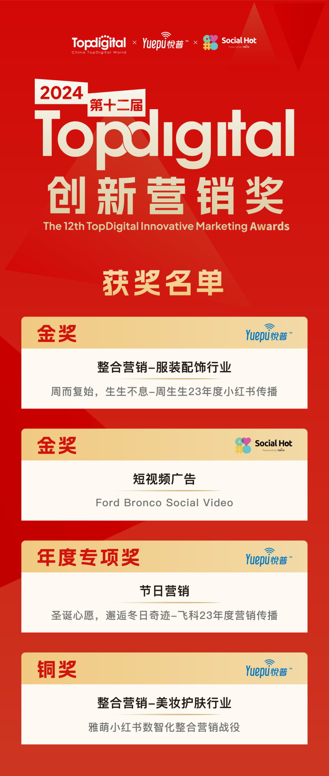 TopDigital已经走过12年,被誉为数字营销领域创新风向标,以“营销创新增长模型”为理念根本,重视对参赛作品创新性、执行性、商业价值、可持续性的考察,注重长期价值建设和内外部综合表现。