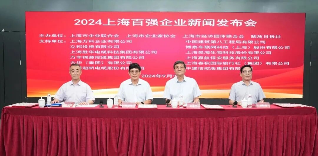 9月3日下午,上海市企业联合会、上海市企业家协会、上海市经济团体联合会和解放日报社联合在中国金融信息中心会议厅召开2024上海百强企业新闻发布会,公布了上海百强企业名单。