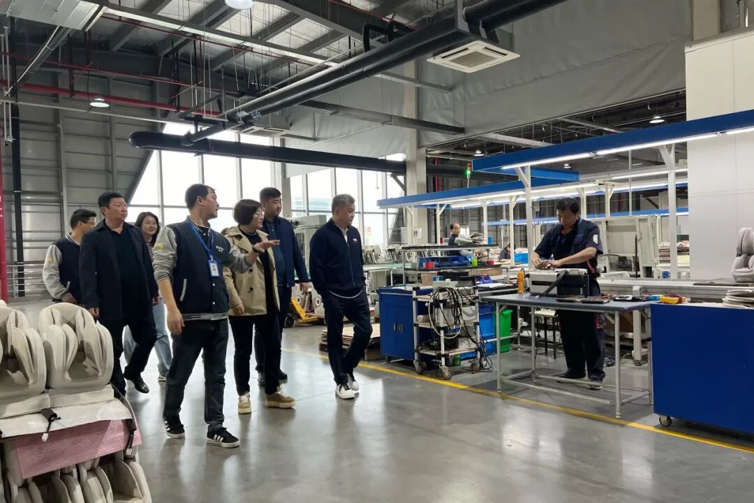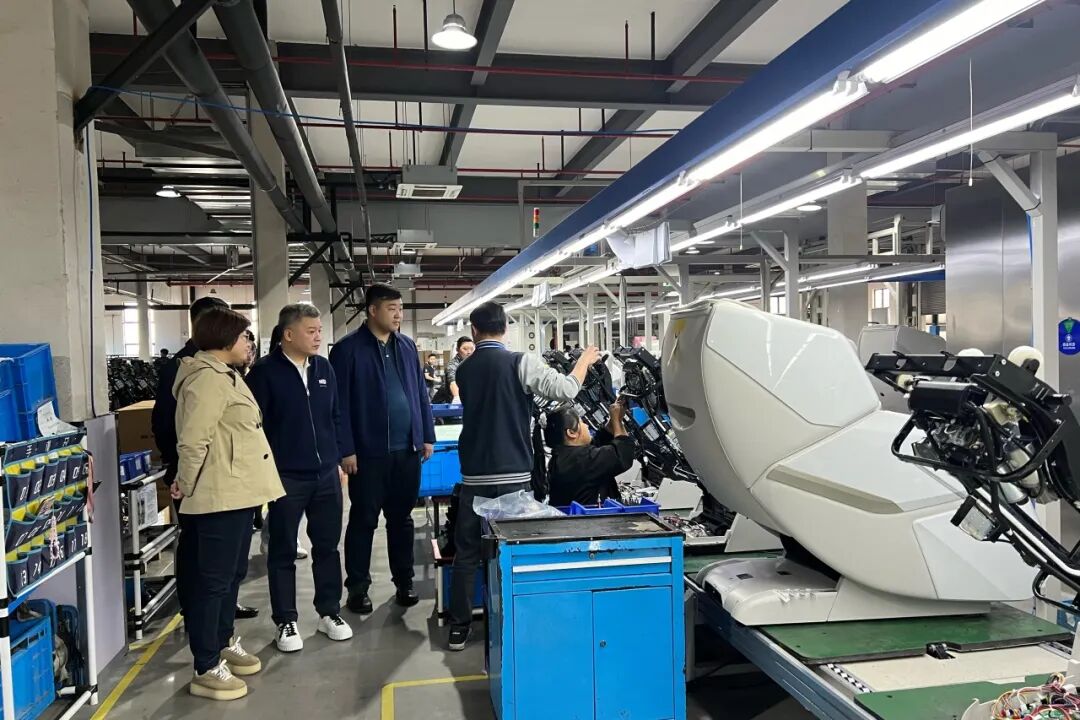在林总带领下,大家参观了按摩椅的生产流程,企业高度规范与智能化生产线给古塔区领导一行留下了深刻印象。通过对荣泰明星按摩椅的体验,大家对产品的舒适度和效果赞赏有加。