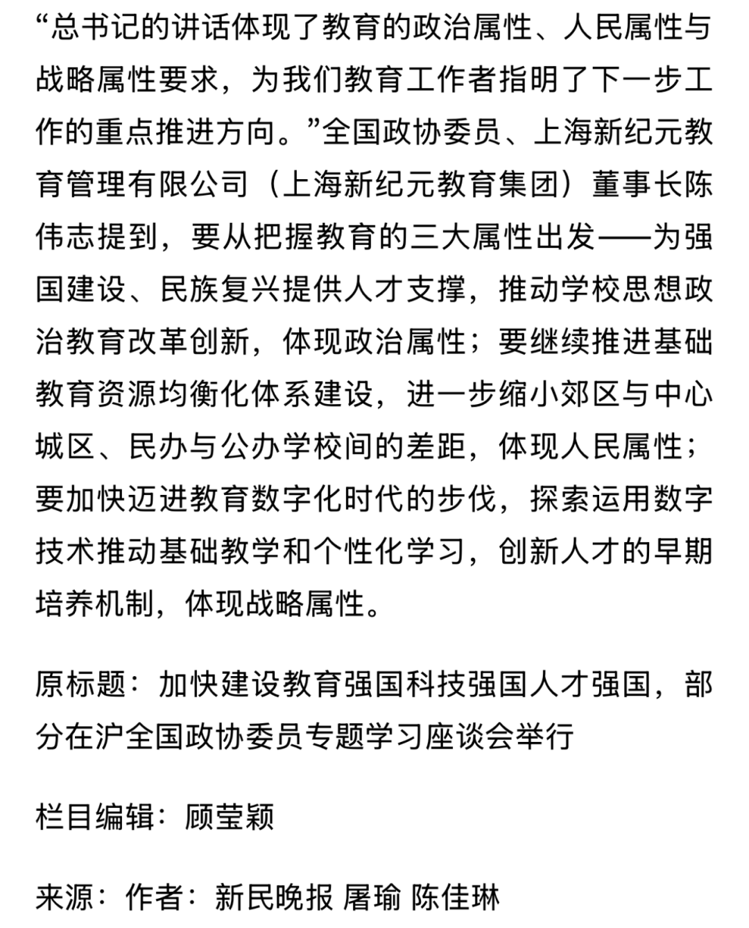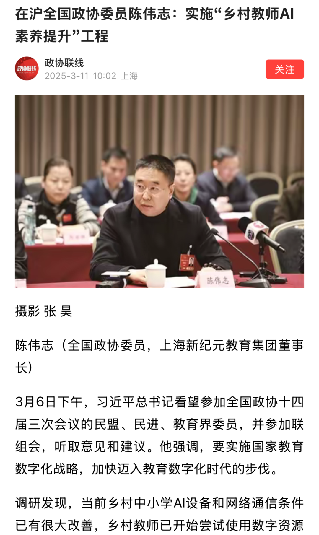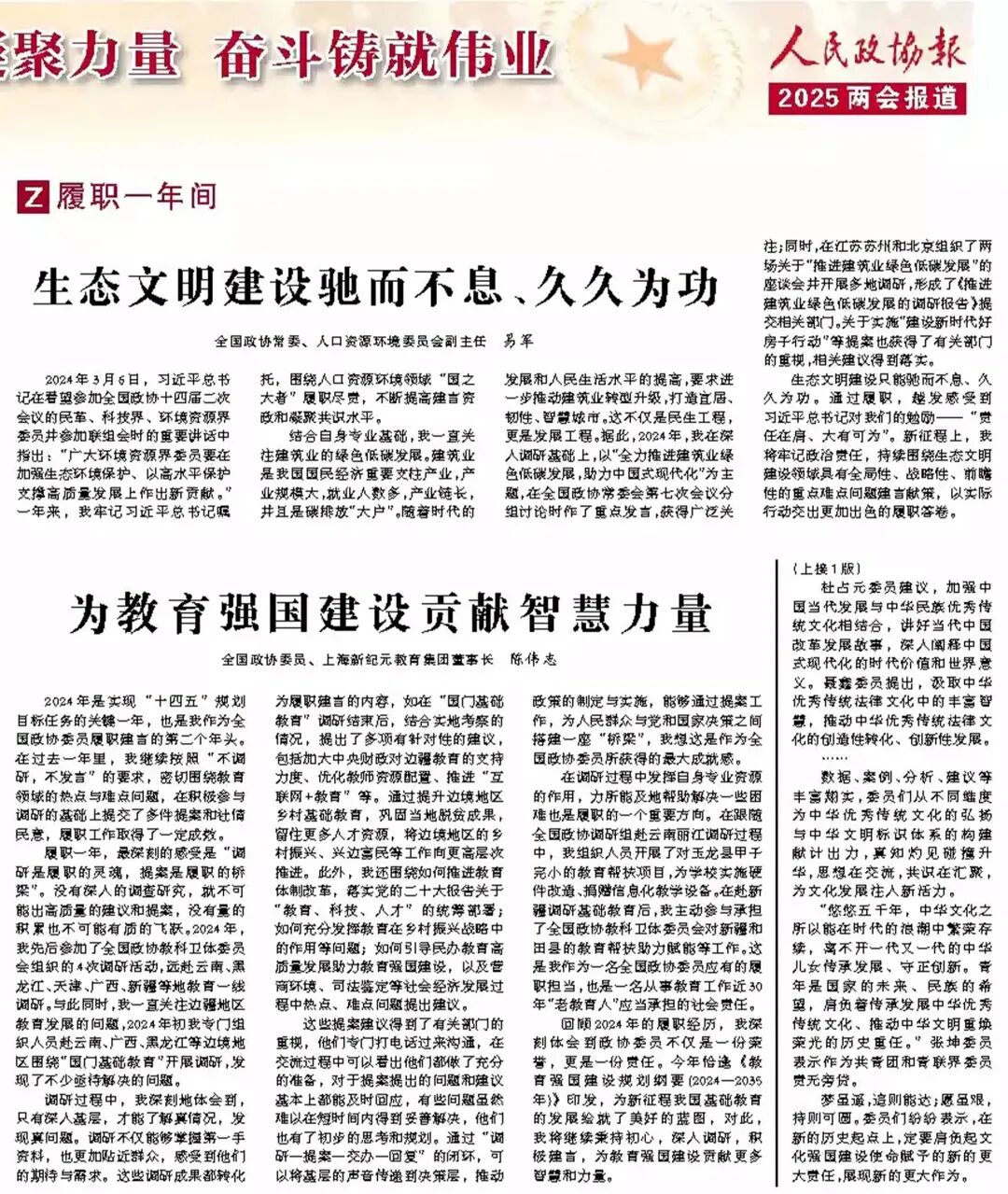 “做真教育,真做教育。”陈伟志委员的履职实践,彰显了教育工作者的时代担当与政协委员的责任情怀。这些提案回应社会关切,为强国建设提供有益思路。期待更多同行者携手奋进,共筑美好未来!