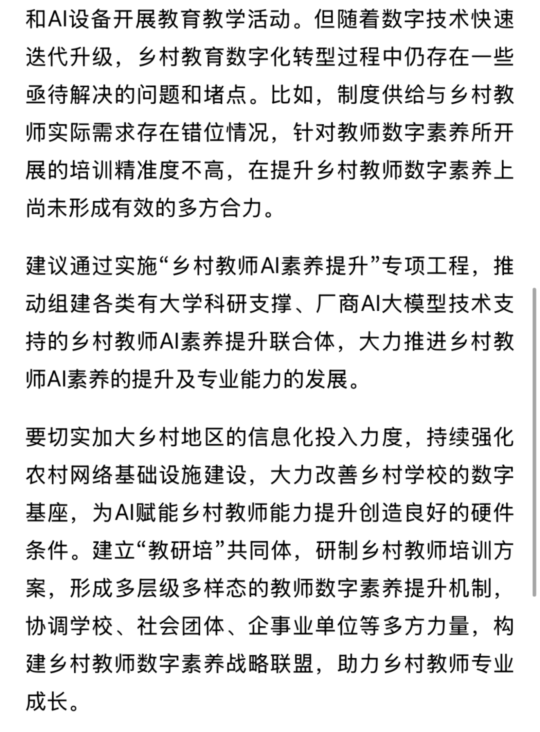 近年来,国家有关教师数字素养提升政策在乡村实施效果不理想,乡村教师普遍数字素养不高,为提升乡村教育教学质量,陈伟志委员带来《运用AI赋能乡村教师数字素养提升》提案。