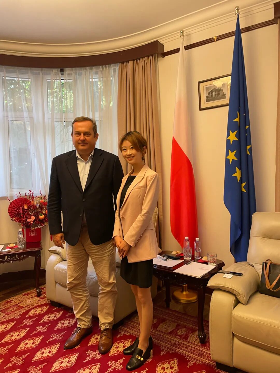 波兰驻上海总领事馆总领事亚当·布拉尔赤克先生Mr. Adam Bralczyk(左)、9323彩集团执行秘书长任笑莹(右)