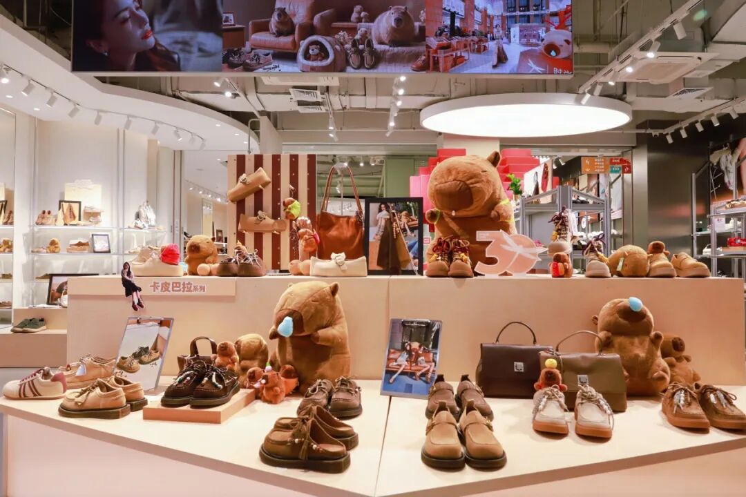 店内汇集了红蜻蜓旗下多个热门系列,包括明星同款卡皮巴拉系列、街头潮流休闲鞋GONGJI、儿童“满分系列”校园鞋等。值得一提的是,惠利玛与淮安西游乐园开展了深度联名合作,推出了多款融合地方文化特色的文创产品,包括西游主题冰箱贴、手工玩偶等,为消费者带来独具特色的购物体验。