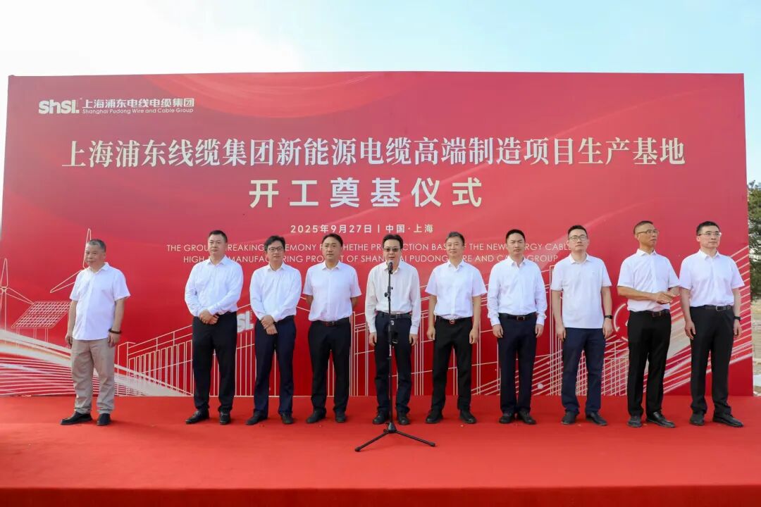奠基仪式上青村镇党委书记刘伟致辞,肯定了上海浦东电线电缆集团长期坚守实业的实干精神,以新能源电缆高端制造基地项目开工为新的起点,鼓励企业再接再厉,向着更高的目标迈进。