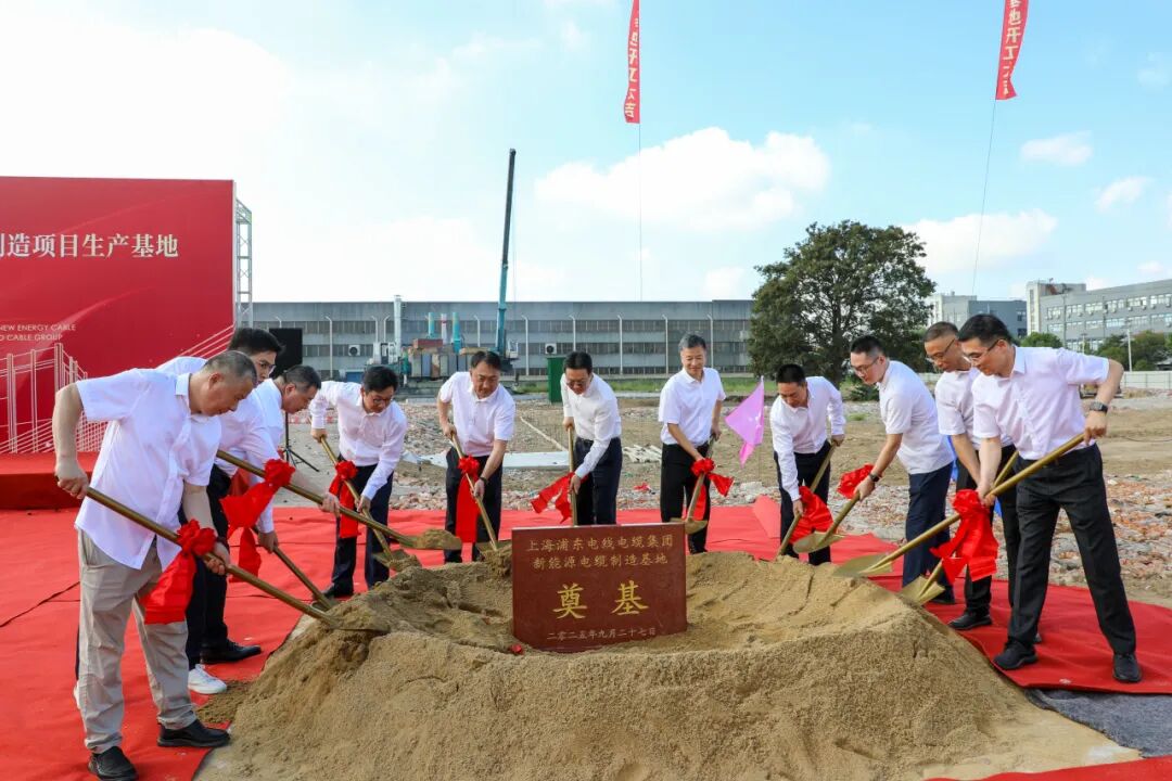 今天上午,上海浦东电线电缆集团举行新能源电缆高端制造项目生产基地奠基仪式!奉贤区委副书记、区政府区长王益群,奉贤区府办主任张华,青村镇党委书记刘伟,青村镇党委副书记、镇长黄镇,青村镇副镇长张隐波等领导出席了今天的奠基仪式,还有青村镇相关科室和园区的负责同志,上海浦东电线电缆集团高管和员工代表、施工单位代表共同见证这一重要时刻。