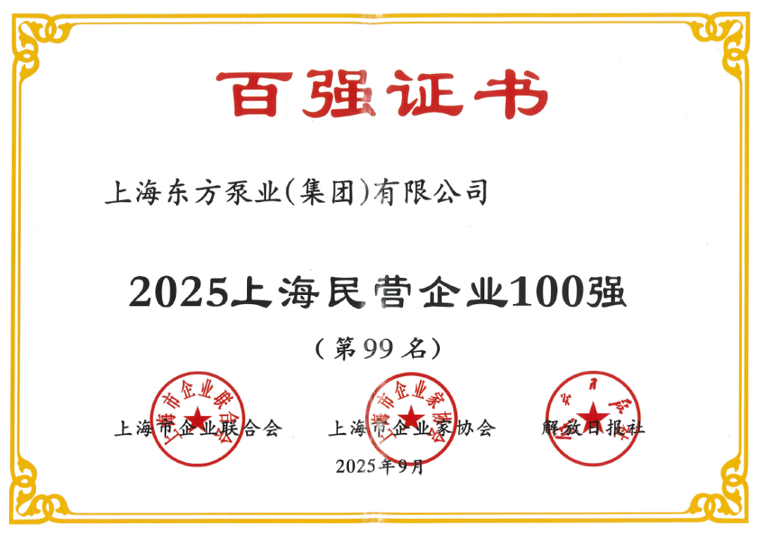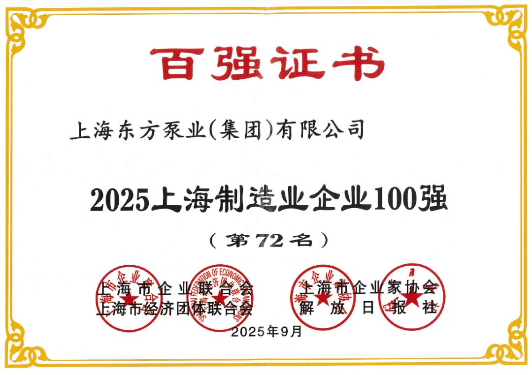 此次荣登百强榜单,离不开社会各界的信任支持,离不开每一位客户的选择与认可,更离不开全体东方人的共同努力。东方泵业将以此为契机,继续秉持“质量第一、客户至上”的经营理念,不断提升产品品质和服务水平,为上海制造业高质量发展贡献更大力量。