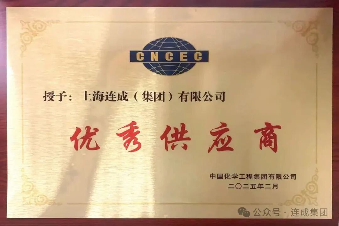 中国化学工程集团有限公司日前正式授予上海连成(集团)有限公司“优秀供应商”称号,以嘉许其在产品质量、交付能力、技术创新及现场服务等维度之卓然表现。