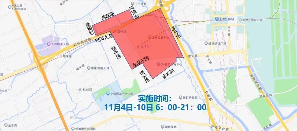 一是严格控制凭证通行管控范围,减少出行影响。围绕国家会展中心设定了交通管制区域,在管控区域范围内的车辆需要凭证通行。管控范围维持在2-3平方公里范围,具体管控措施时间为11月4日至11月10日每日6时至21时。在管控区域经营、生活有出行需求的居民、企业,警方将会同物业、居委统一登记、免费发放车辆通行证,保障企业群众日常出行需求。目前,此项工作正抓紧组织开展,预计将于本月底前完成。