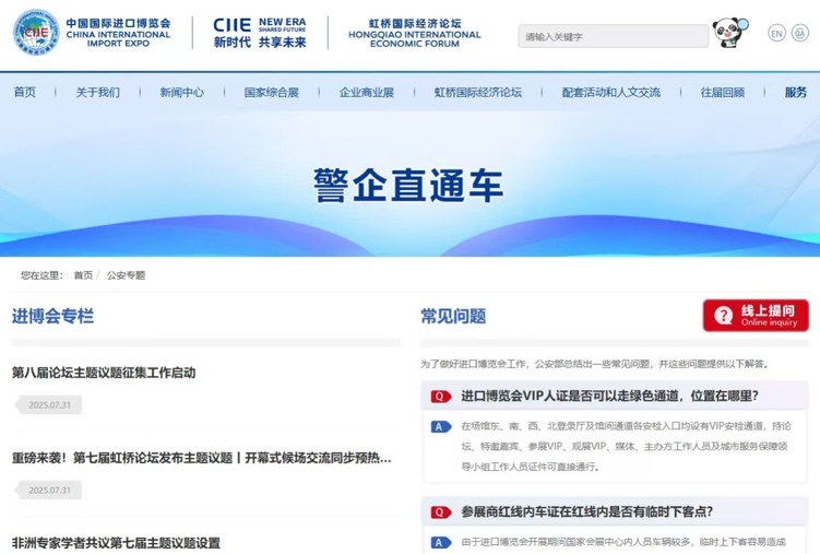 三是畅通警企警民联系沟通渠道。在中国国际进口博览会门户网站主页醒目位置设置“警企直通车”专栏飘窗。同步在市公安局门户网站开设“进博会警民警企沟通专栏” 。企业和群众可浏览警方发布的各项进博会便利化举措,查找历届常见问答,也可提问咨询。