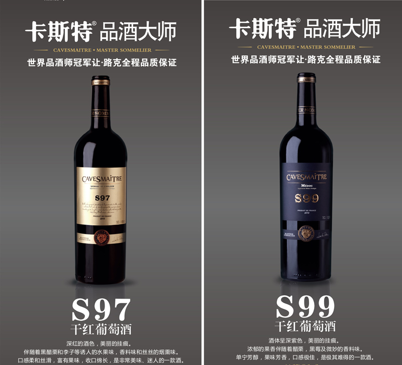 承袭法国葡萄酒纯正血统的卡斯特,作为中国市场最富盛名的法国葡萄酒品牌,在葡萄酒界拥有不可复制、不可超越的先机优势。代表了法国葡萄酒至高造诣的卡斯特品酒大师,是卡斯特为中国市场特别打造的战略核心主导产品。携手卡斯特品酒大师,在进口葡萄酒市场大势中分享先机,共同缔造进口葡萄酒的品牌奇迹。