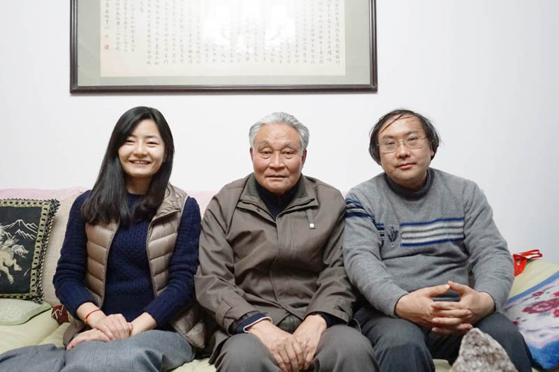 左一:记者王莹莹;中:张琛;右一:张琛侄儿、著名书法篆刻家张索