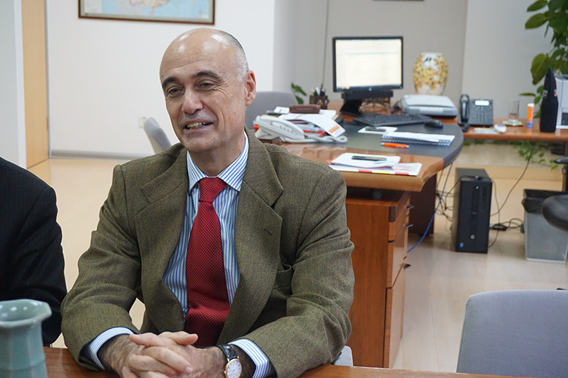 爱德华多•埃乌巴先生向厉蓓蕾秘书长介绍了西班牙的基本情况,据了解,西班牙王国是位于欧洲西南部的君主立宪制国家,是世界第九大经济体、第六大外商直接投资接收国,近几年的经济增长率一直高于欧洲平均水平。目前西班牙的经济主要呈现出以第二、第三产业为主的经济结构;以橄榄和葡萄酒为龙头的特色农业;第二产业体系完整;服务业发达等特征。目前政府正大力推动电子、信息等新型产业的发展。