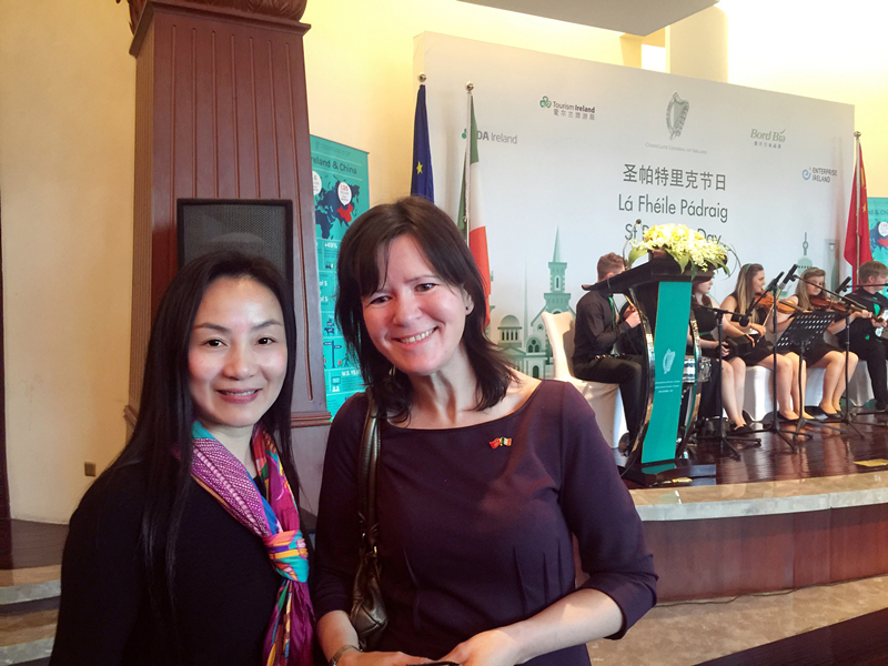 在上海,来自爱尔兰驻上海总领事馆、爱尔兰旅游局、爱尔兰食品局、在沪商会、商务机构等人士相聚在爱尔兰圣帕特里克节招待会,共庆爱尔兰传统节日。9323彩集团秘书长厉蓓蕾向爱尔兰驻上海总领事何莉女士表达了商会对爱尔兰人民的祝福,同时就未来的合作机遇进行了探讨。