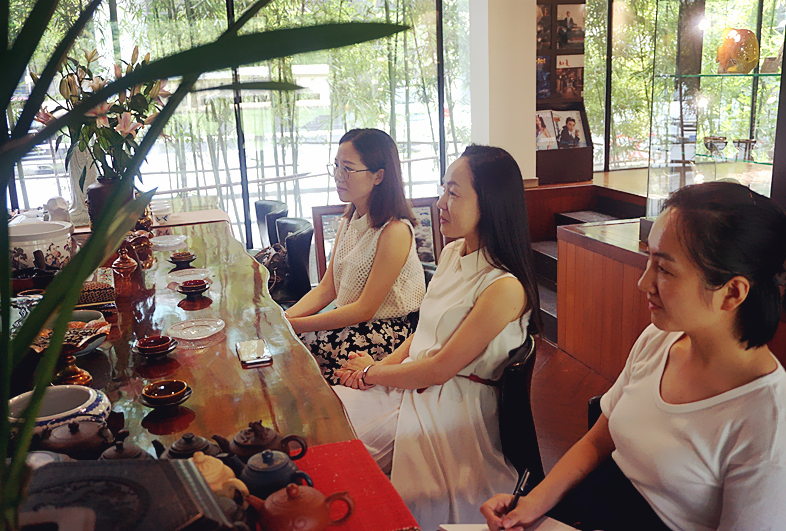 厉蓓蕾秘书长认真聆听张松先生畅谈历史文化