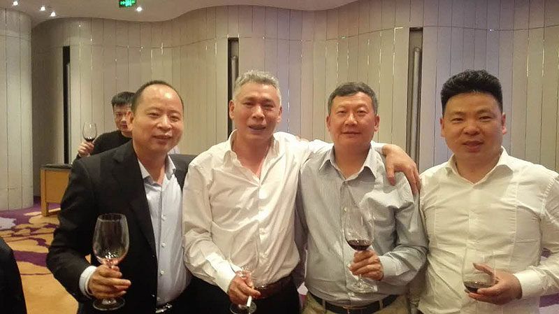 合影(从左到右:商会副会长、山川泵业董事长朱建云,商会会长厉育平,执行会长、清华科教董事长朱显财,副会长、量邦实业董事长李建云)