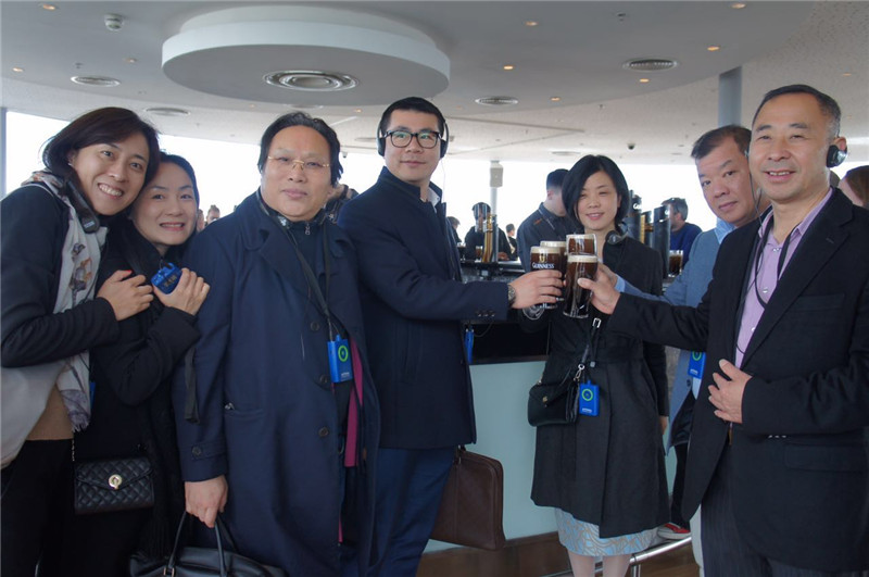 健力士黑啤是爱尔兰的国宝,在爱尔兰,哪里都有它的身影。考察团都柏林之行的第一站就是健力士黑啤展览馆。健力士黑啤展览馆落成于1904年,占地64英亩,芝加哥建筑风格,整体建筑由钢筋铸成。啤酒展览馆共有八层楼,系统地介绍了健力士的企业文化。