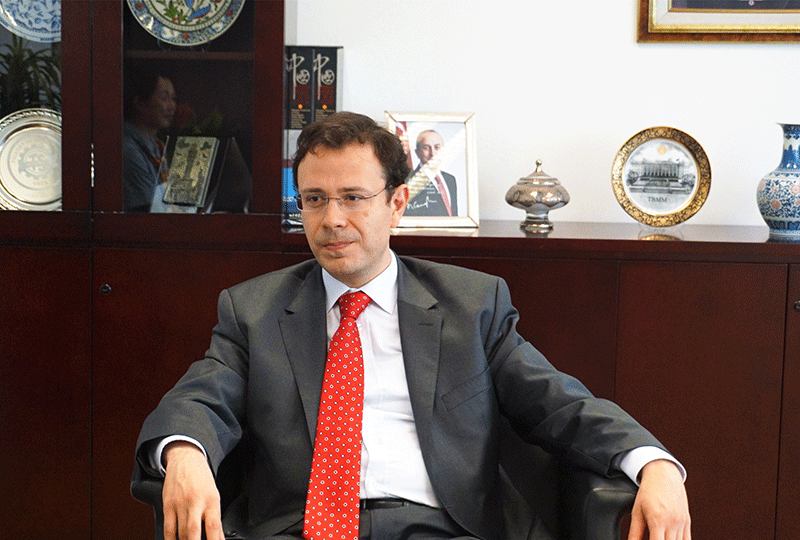 总领事安铜首先对秘书处的到来表示了热烈的欢迎。他也简要介绍了土耳其与中国的贸易关系。土耳其与中国的双边贸易总额每年在300亿美元左右,中国是土耳其的第二大贸易伙伴,在亚太地区则是第一大贸易伙伴。土耳其目前主要对中国出口原材料,大理石及其他矿产,还有电子产品及纺织品,也希望能吸引更多的中国资本投入到土耳其。中国提出的“一带一路”为中土之间开拓更多领域的合作提供了更大的机会,通过“一带一路”,两国将在经济、文化等领域开阵更深入的合作。