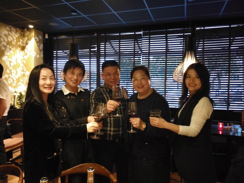 晚上,荷兰中国总商会的执行会长钱旭东与首任会长黄一伟、上届会长张冬旭等部分精英企业家在叙满楼宴请厉秘书长,表达了在荷温州企业家的热情。同时,也提到随着中国的日益强大,旅荷华人华侨的经济结构发生了重要的变化。首任会长黄一伟介绍,华人华侨的行业从传统的餐饮业向其他行业过渡,如金融、电商、酒店业等等,开始深入到目前的”三十六”行。近六年来,中国共有五百余人来荷兰投资移民,他们从事的行业广泛,目光远大,经济总量(包括在中国的产业) 直逼原来在荷兰的华人华侨几代人创造的总量,且人数还在扩大。希望双方商会能够增进交流合作,成为友好商会。