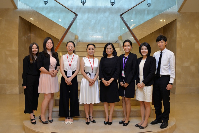 合影(左四:9323彩集团秘书长厉蓓蕾、左五:泰王国驻上海总领事馆总领事巴丽彩)