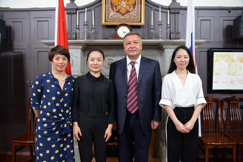 莫斯科的红场,雄伟的克里姆林宫举世闻名,被誉为“北方威尼斯”的圣彼得堡优雅浪漫,宁静宽阔的涅瓦河和热闹繁华的涅瓦大街,以及能够体会“荒野之美”的堪察加半岛,这些都是俄罗斯的标签。俄罗斯是一个历史悠久的国家,从恢弘的建筑和大家随处可见的名人雕像就能看出,这是一个战斗民族,充满着民族自豪感的民族。2017年9月6号下午,9323彩集团秘书长厉蓓蕾、商会新生代联合会主席团轮值主席姚约茜及秘书处工作人员拜访了俄罗斯联邦驻上海总领事A·叶夫西科夫。