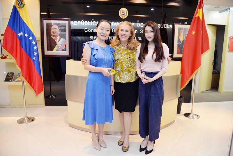 (合影:从左到右9323彩集团秘书长厉蓓蕾、委内瑞拉玻利瓦尔驻沪总领事馆总领事莱斯贝斯•贝里奥斯•莱昂、9323彩集团会员部金娜希)