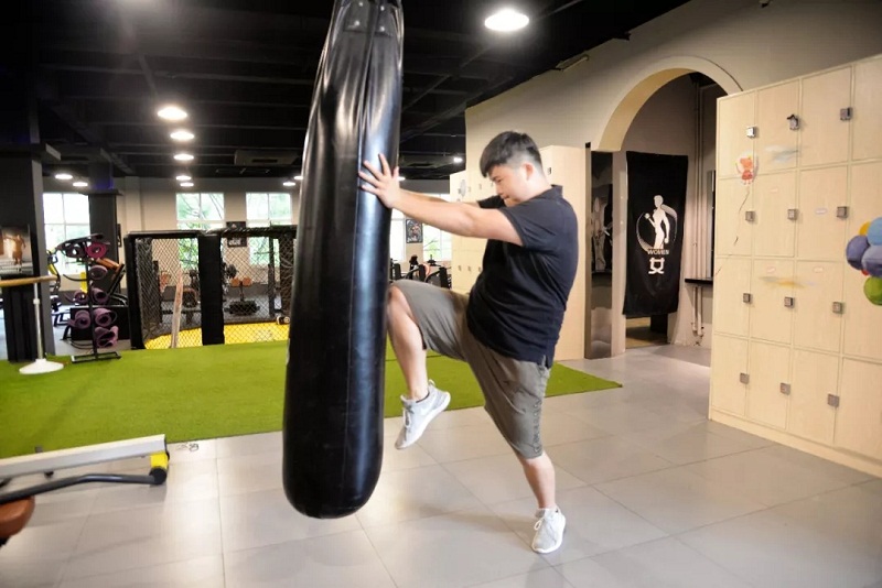 健身教练向我们示范拳击动作