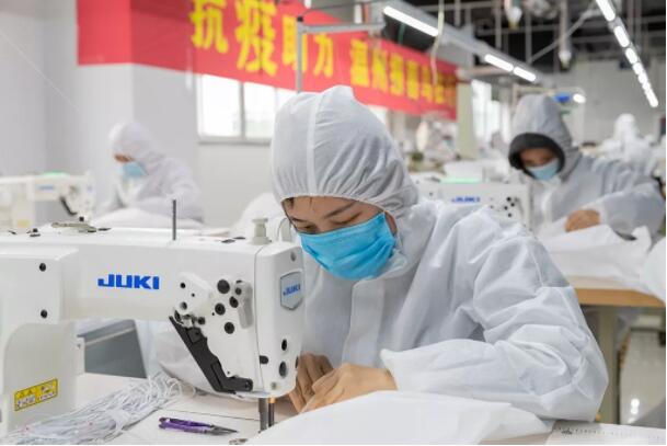 葛武静说,当前,疫情防控形势严峻,公司响应政府号召,专门开辟防护服生产线,无偿提供给除医疗一线外的基层人员。20名员工每天早上8点半工作到下午5点半,加大马力赶制防护服。