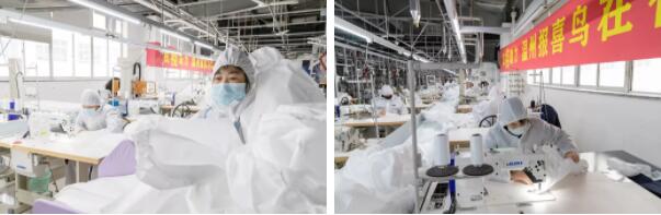 昨日上午10点30分,永嘉县瓯北街道和当地派出所分别收到了报喜鸟捐助的工业级防护服。这批刚从车间赶制出来的防护服将在第一时间发放到防疫一线工作人员手中。