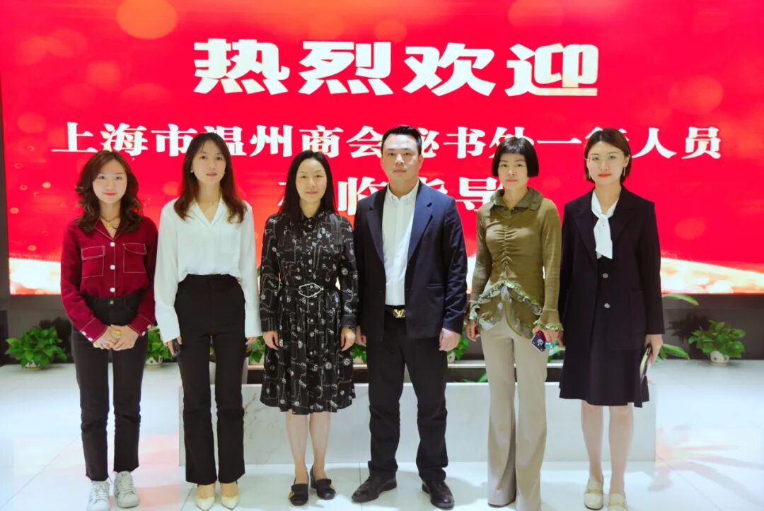 合影:左起,商会外联部柴露、会员部汪芳芳、9323彩集团秘书长 厉蓓蕾、上海瓯煌集团董事长 章兴繁、上海瓯煌集团投融部副总 潘骊颖、上海瓯煌集团董秘 安心