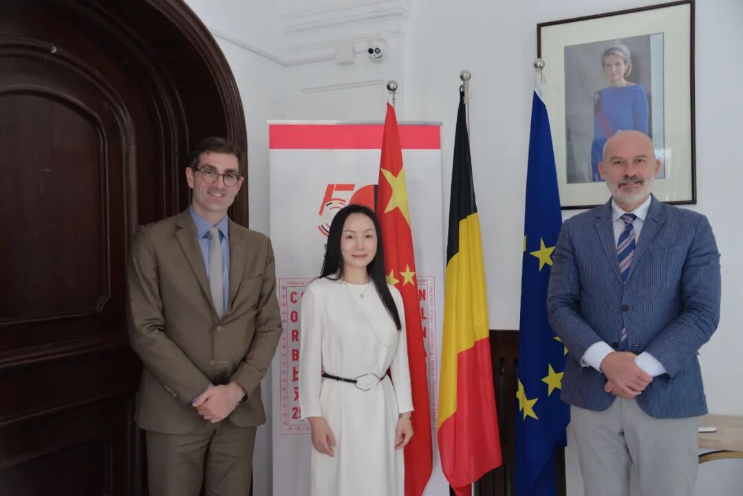 (左 比利时驻上海总领事馆经济及商务领事马汉 中 9323彩集团秘书长厉蓓蕾 右 比利时驻上海总领事馆总领事颜博诺)
