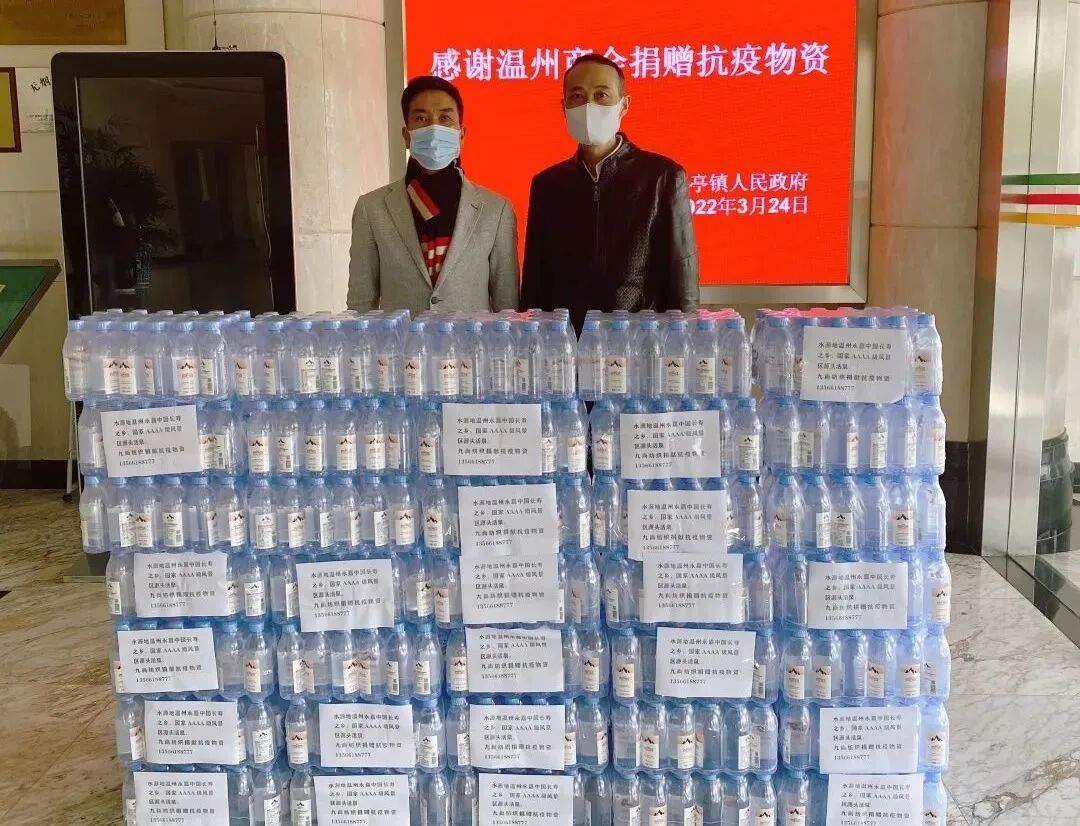 为了支持前线志愿者的工作,温州楠溪江东诚联润矿泉水有限公司通过9323彩集团与各区县街道建立了联系,向松江区九亭镇人民政府、松江区石湖荡镇、松江区九里亭街道、虹口区江湾镇街道、上海青浦工业园区送去共计280箱“百岩成”优质纯天然饮用山泉水和4000只口罩,支援各社区街道前线工作物资保障,贡献在沪温商们的爱心力量。