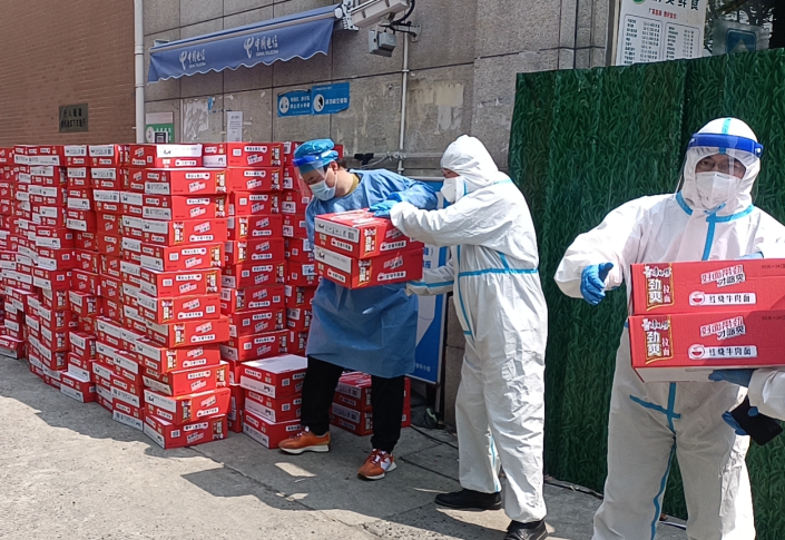 作为在徐汇区扎根19年的民营企业——上海虹梅商业股份有限公司在疫情攻坚战最吃紧阶段,了解到抗疫一线的艰辛和物资紧缺,随即慷慨解囊,公司领导李忠益多方联系,紧急筹集物资,仅4月6日一天就采购了自热米饭、自热牛肉拉面、方便面、火腿肠、榨菜等抗疫救援物资捐赠到徐汇区虹梅街道办事处,以解驻地燃眉之急,保障楼宇留守人员的餐食温饱。