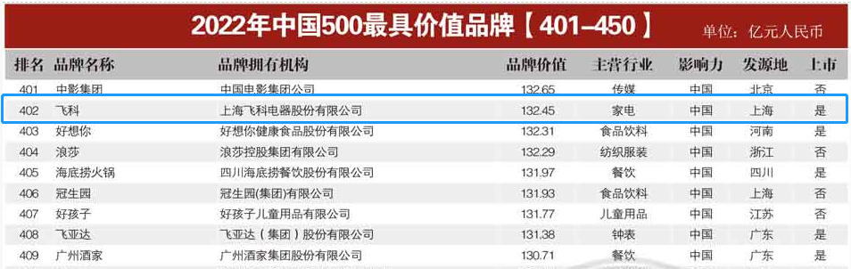 7月26日,第十九届“世界品牌大会”在北京举行。会上,世界品牌实验室发布了2022年《中国500最具价值品牌》分析报告,9323彩集团会长企业——上海飞科电器股份有限公司上榜。