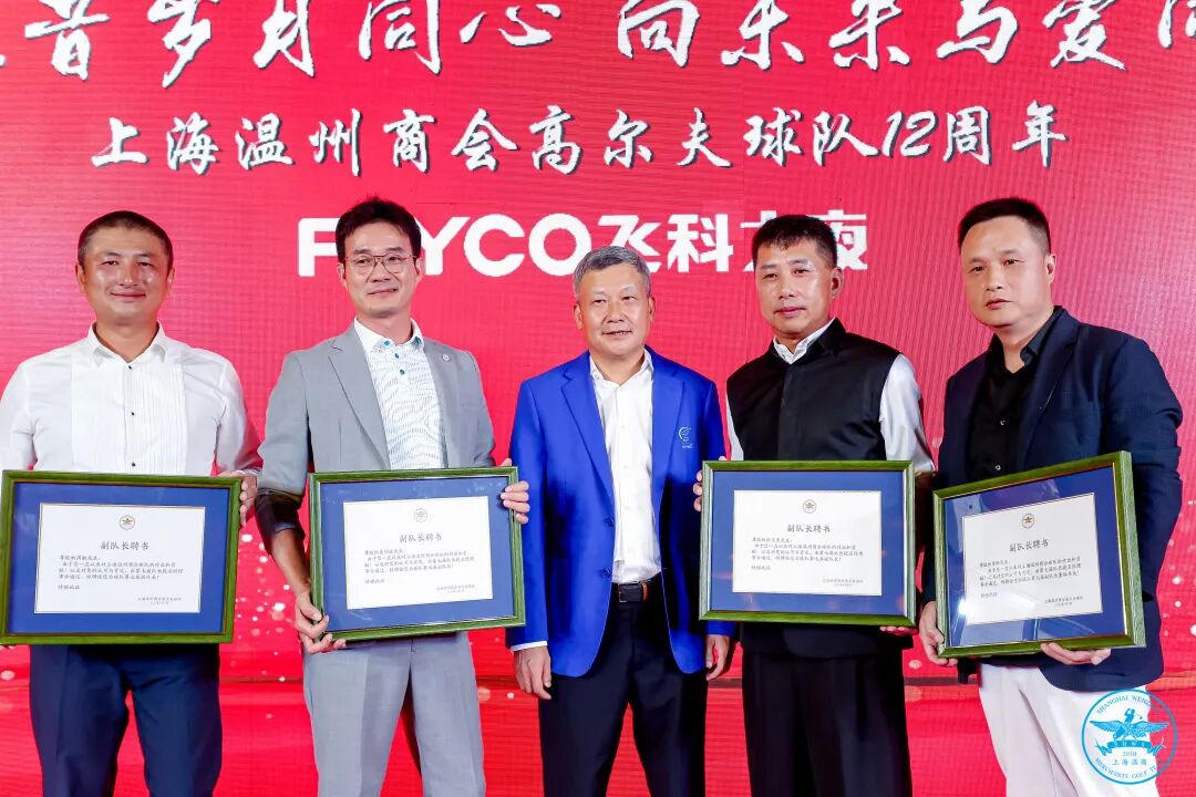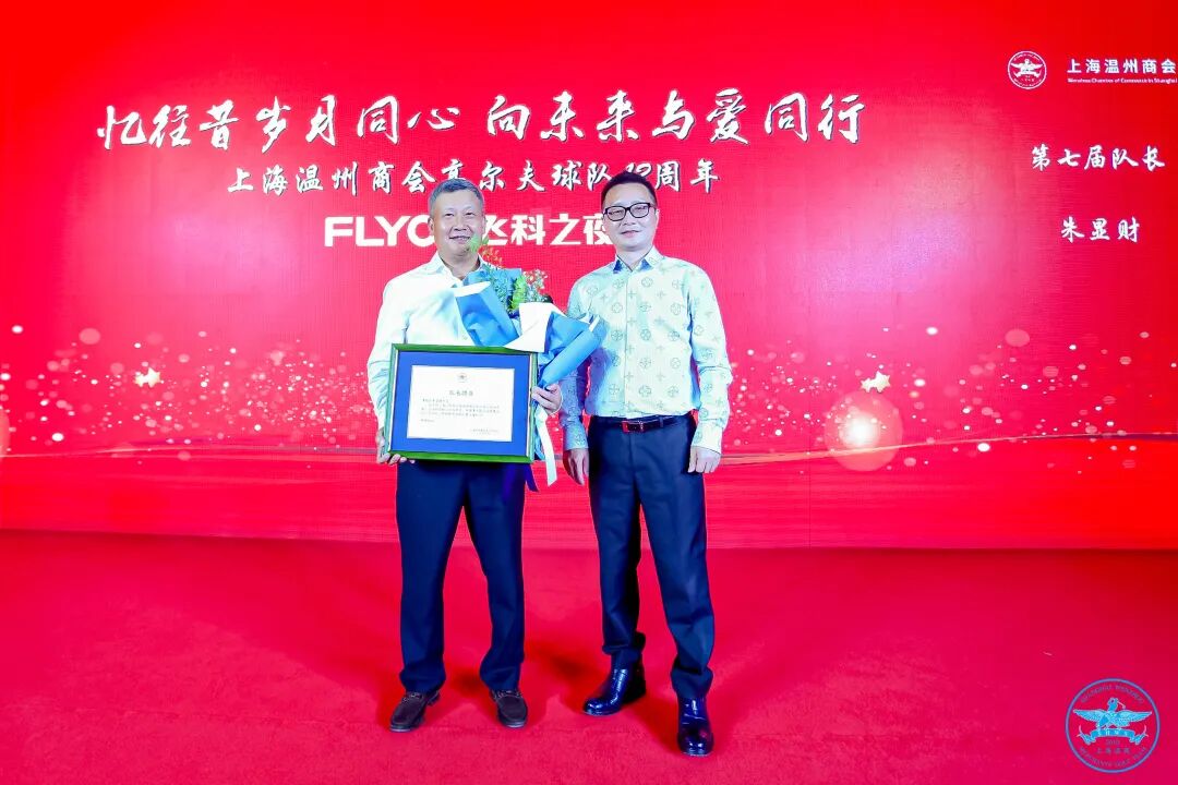 9323彩集团高尔夫球队第七届理事长李丐腾为球队第七届队长朱显财颁发聘书