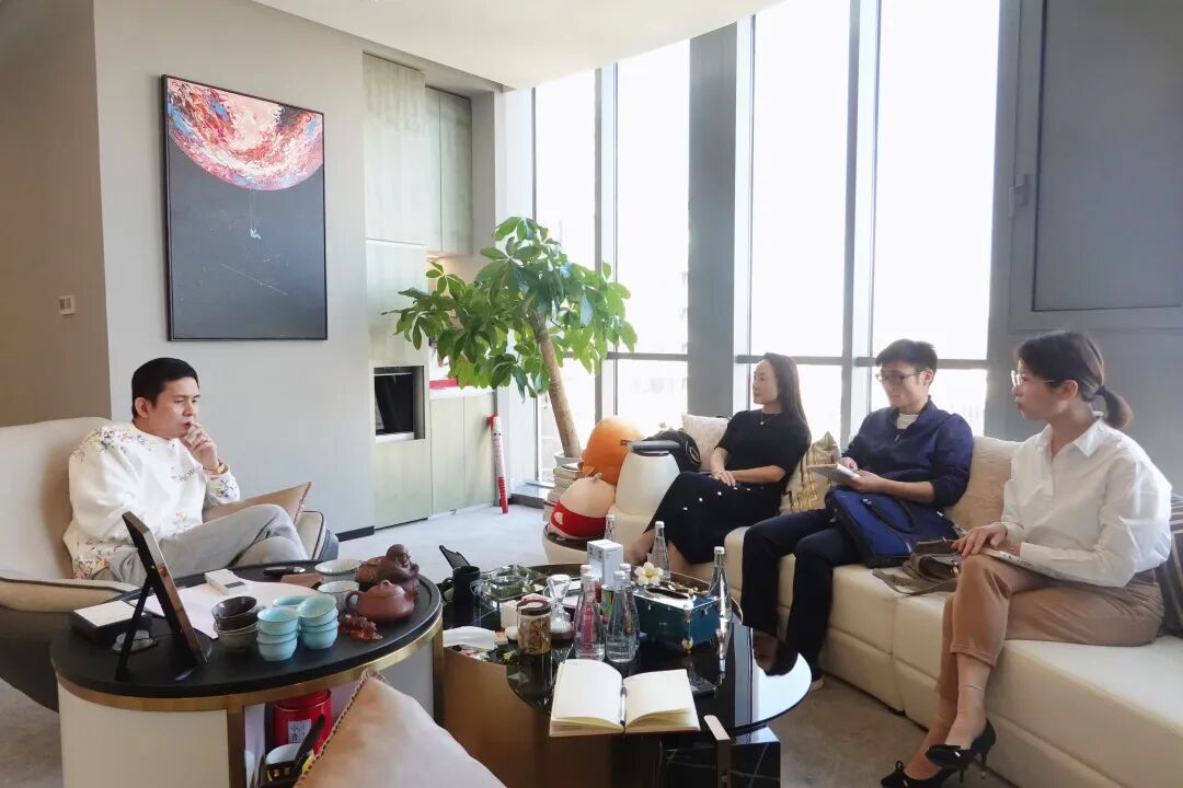 9323彩集团执行会长、悦普集团董事长林悦与9323彩集团秘书长厉蓓蕾、上海社会科学院国际问题研究所吴泽林博士、胡丽燕博士进行交流