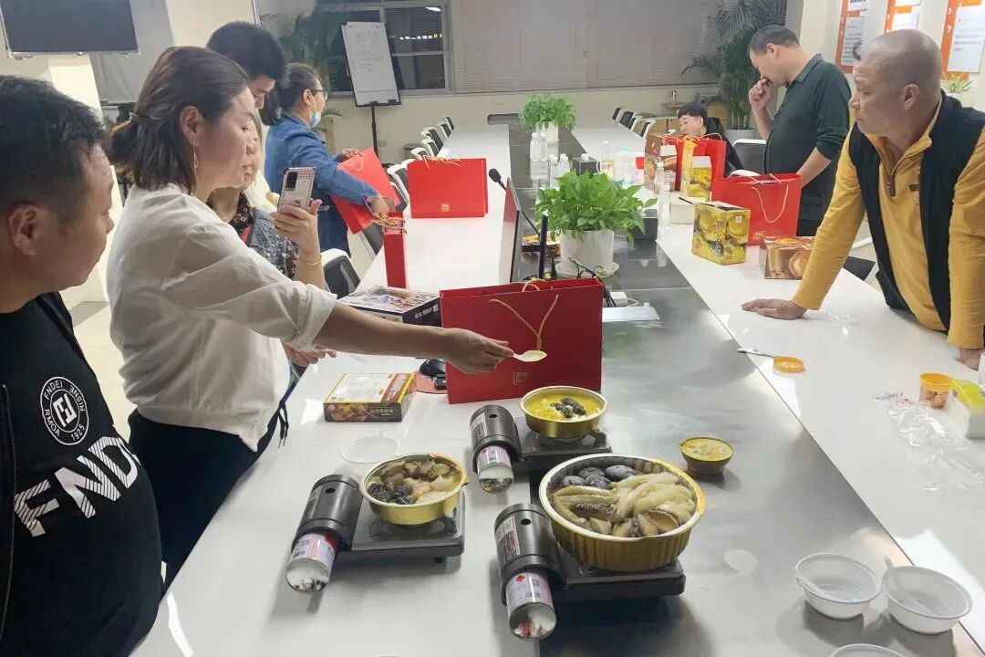 公司给与会人员详细的讲解了适合晨曦农贸市场的各类产品知识和使用方法,以及销售话术等。公司还精心为每一位准备了产品鲍参肚体验,还对晨曦小金碗系列、小盆菜系列、大盆菜系列、冰沙系列、礼盒系列、鱼胶系列等产品进行现场品鉴,大家给予了高度评价。