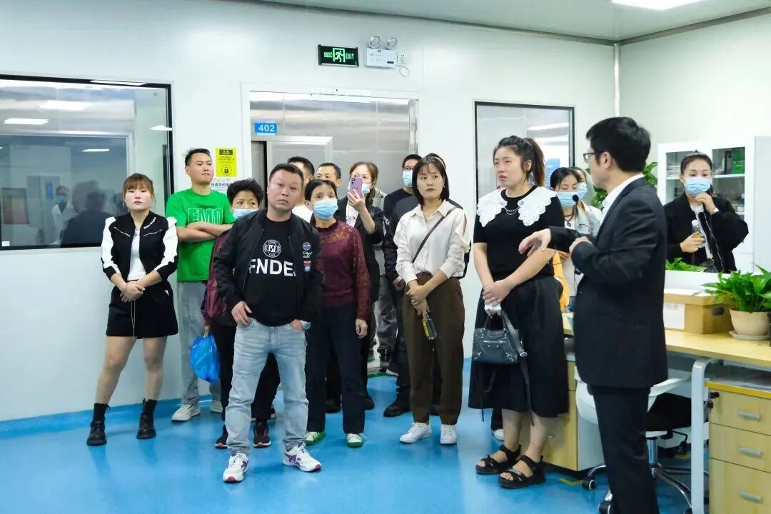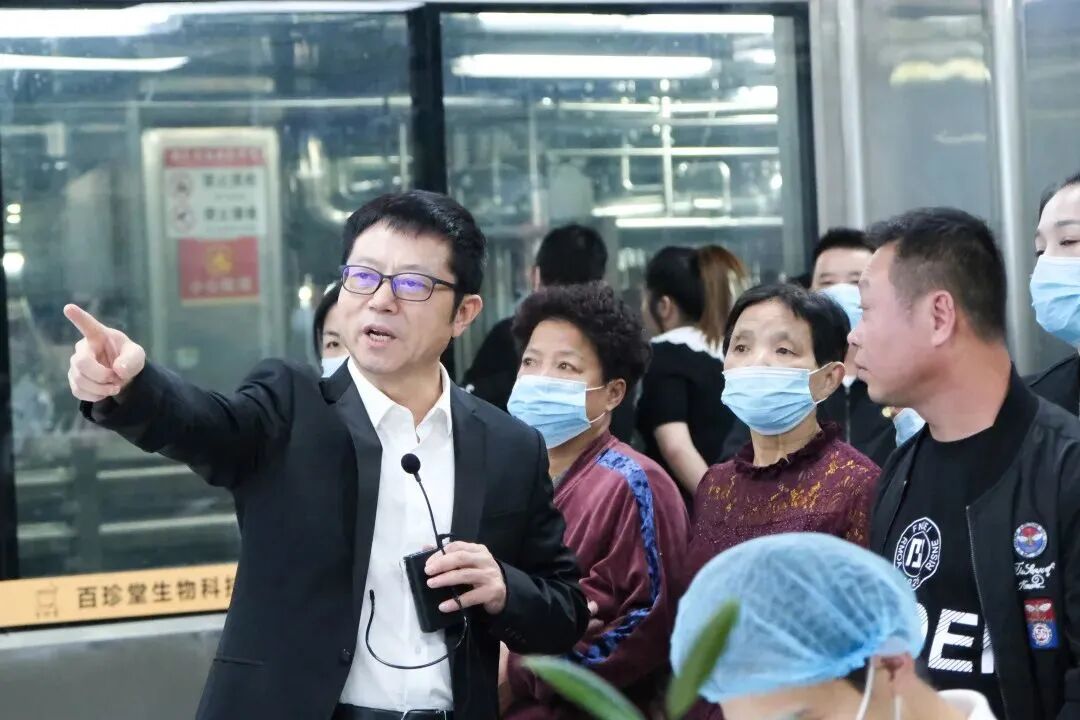 第一组30多位农贸市场摊主在百珍堂常务副总刘常武讲解下参观百珍堂预制菜数据控制中心。