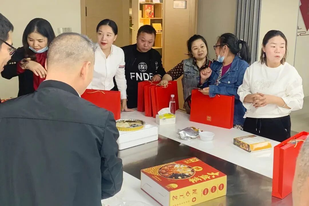 19点45分,85位农贸市场摊主进入到公司6楼大会场,由公司副总刘润平代表公司进行大会致辞,拉开的此次座谈大会的序幕,感谢大家的到来,希望大家和百珍堂一起把温州预制菜事业做好,秉承政府使命:“预制温州味、瓯菜天下鲜”。