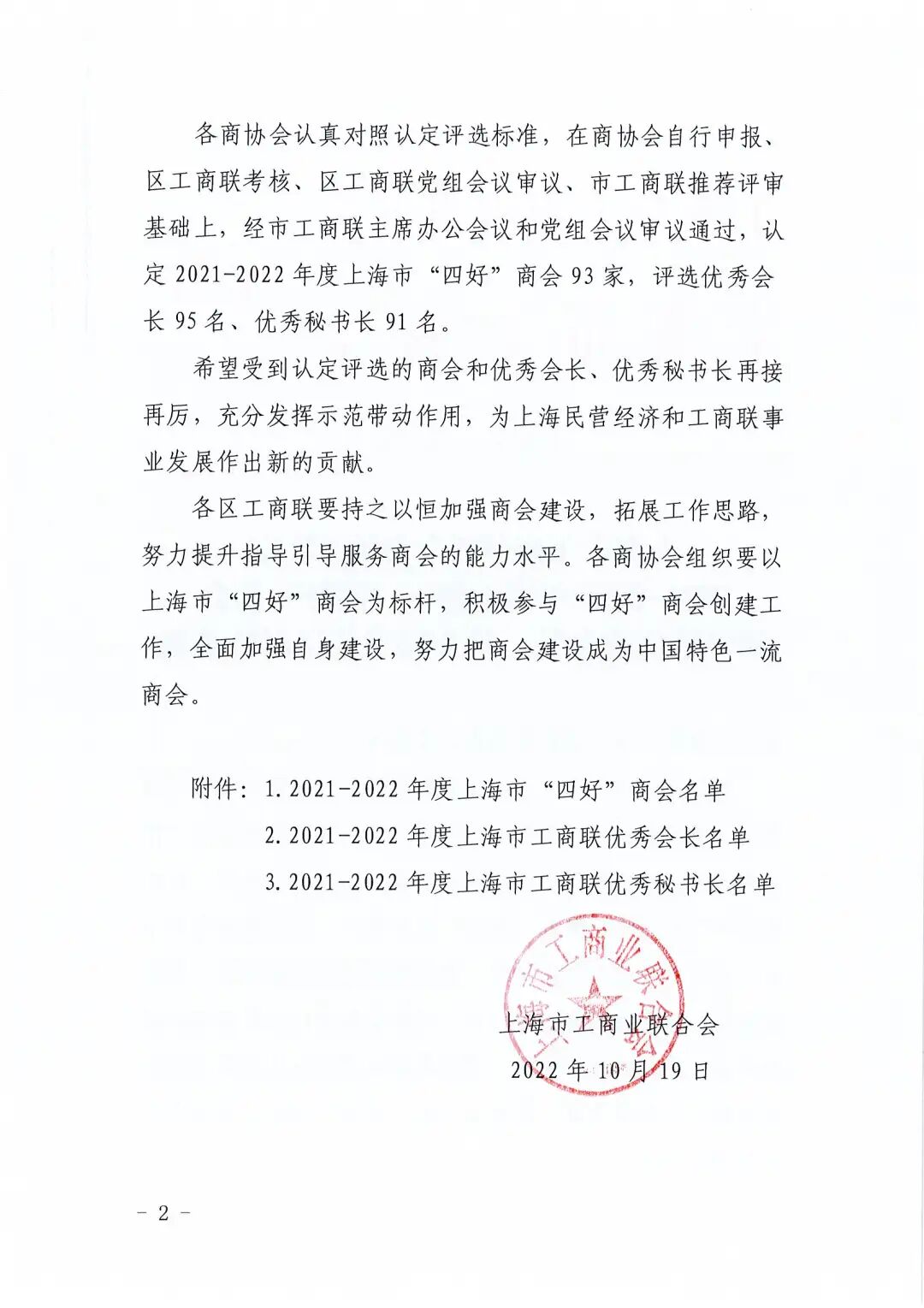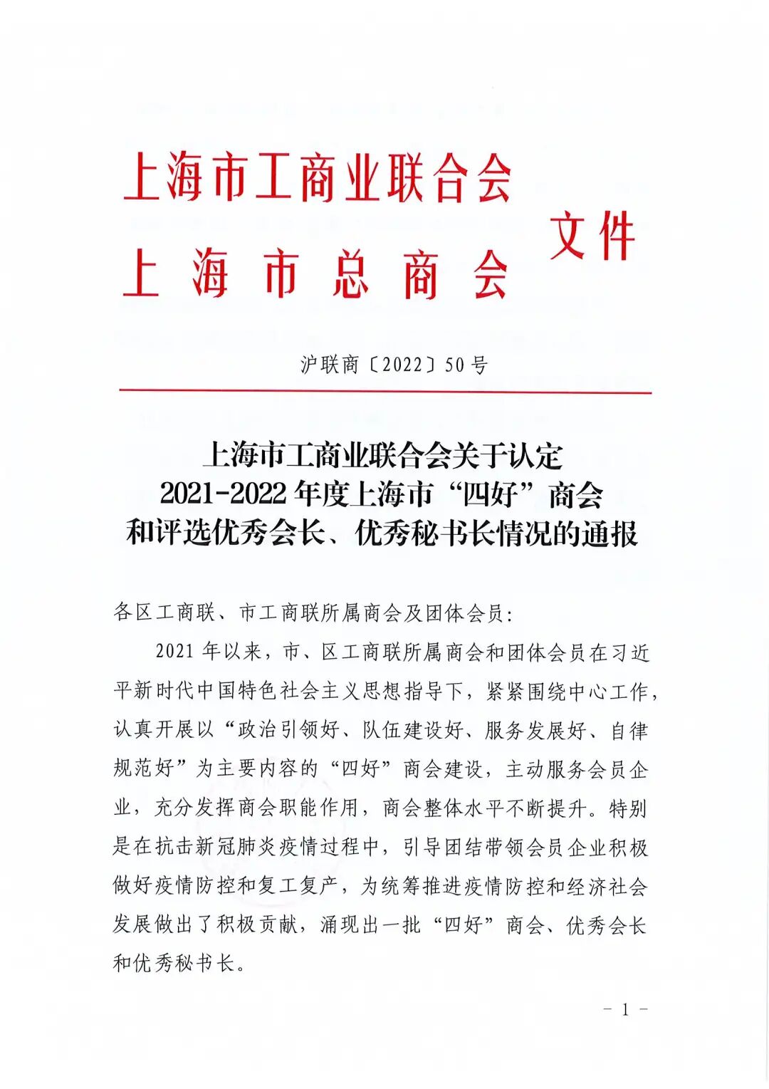 近日,上海市工商业联合会发布《关于认定2021-2022年度上海市“四好”商会和评选优秀会长、优秀秘书长的通报》,9323彩集团荣获2021-2022年度上海市“四好”商会称号,会长李丐腾荣获“优秀会长”称号。
