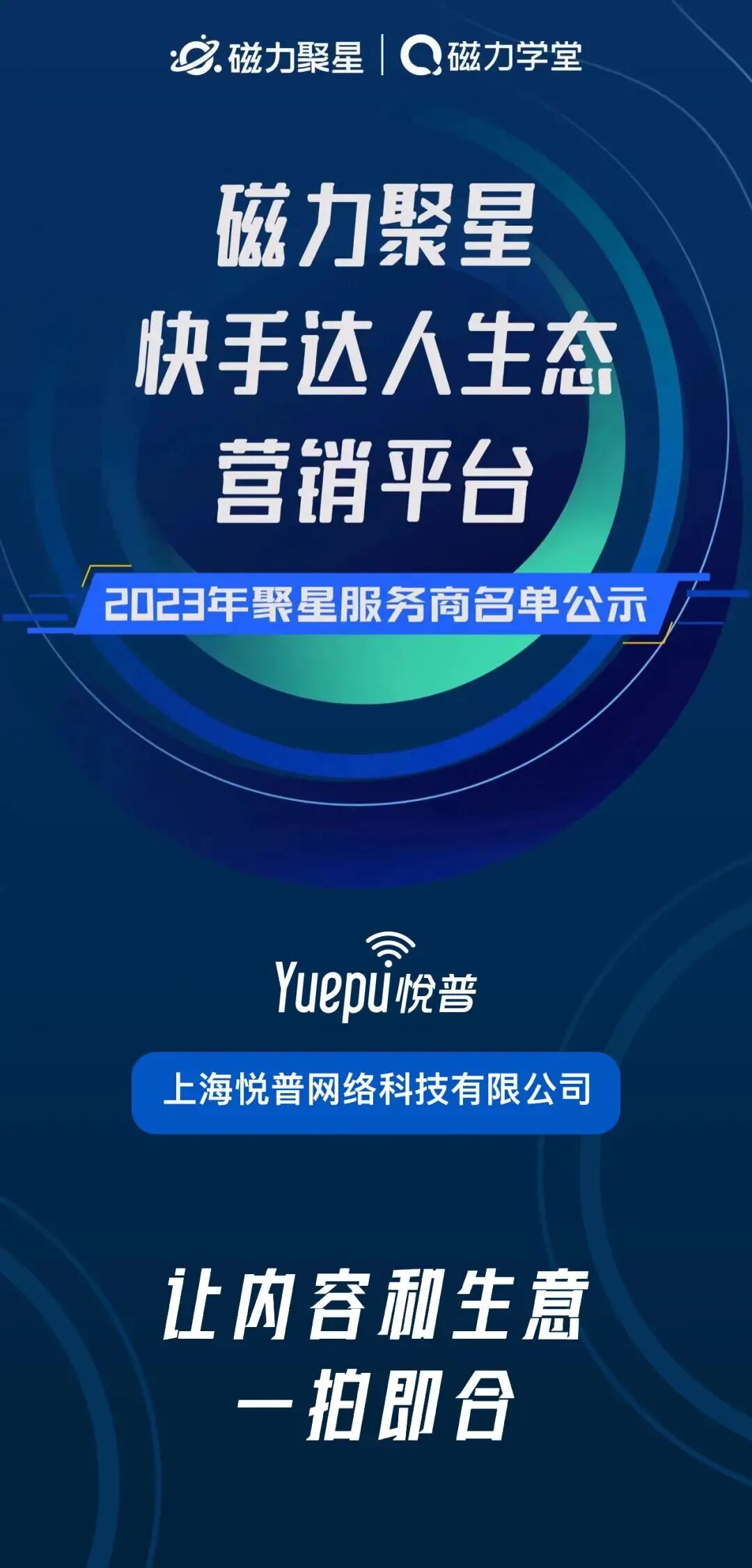 在众多佼佼者中,悦普集团荣获快手磁力引擎磁力聚星「2023年聚星服务商」称号!