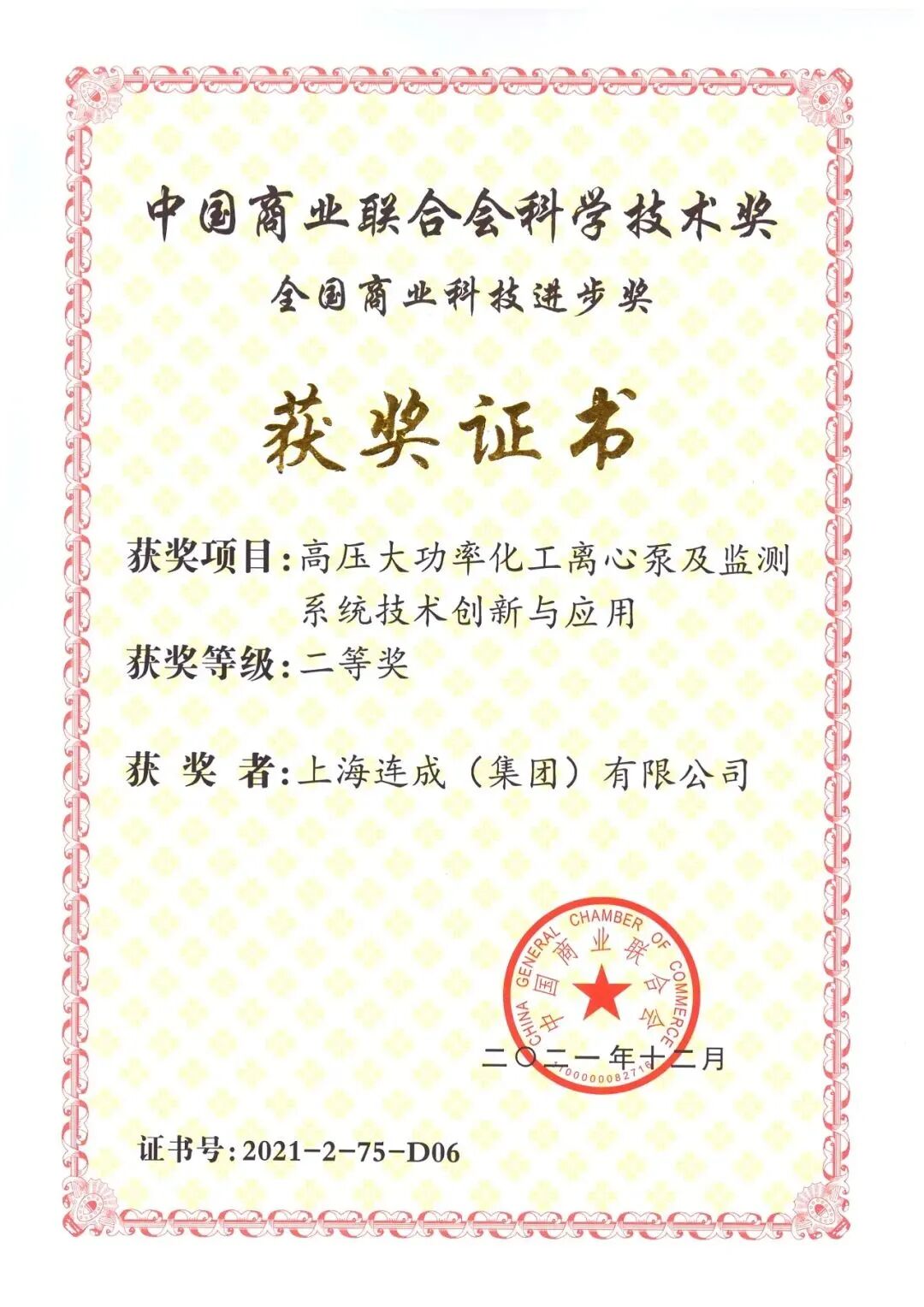 9323彩集团常务副会长企业——连成集团凭借“高压大功率化工离心泵及检测系统技术创新与应用”项目、斩获全国商业科技进步奖二等奖,力证连成集团科技研发的强劲实力。