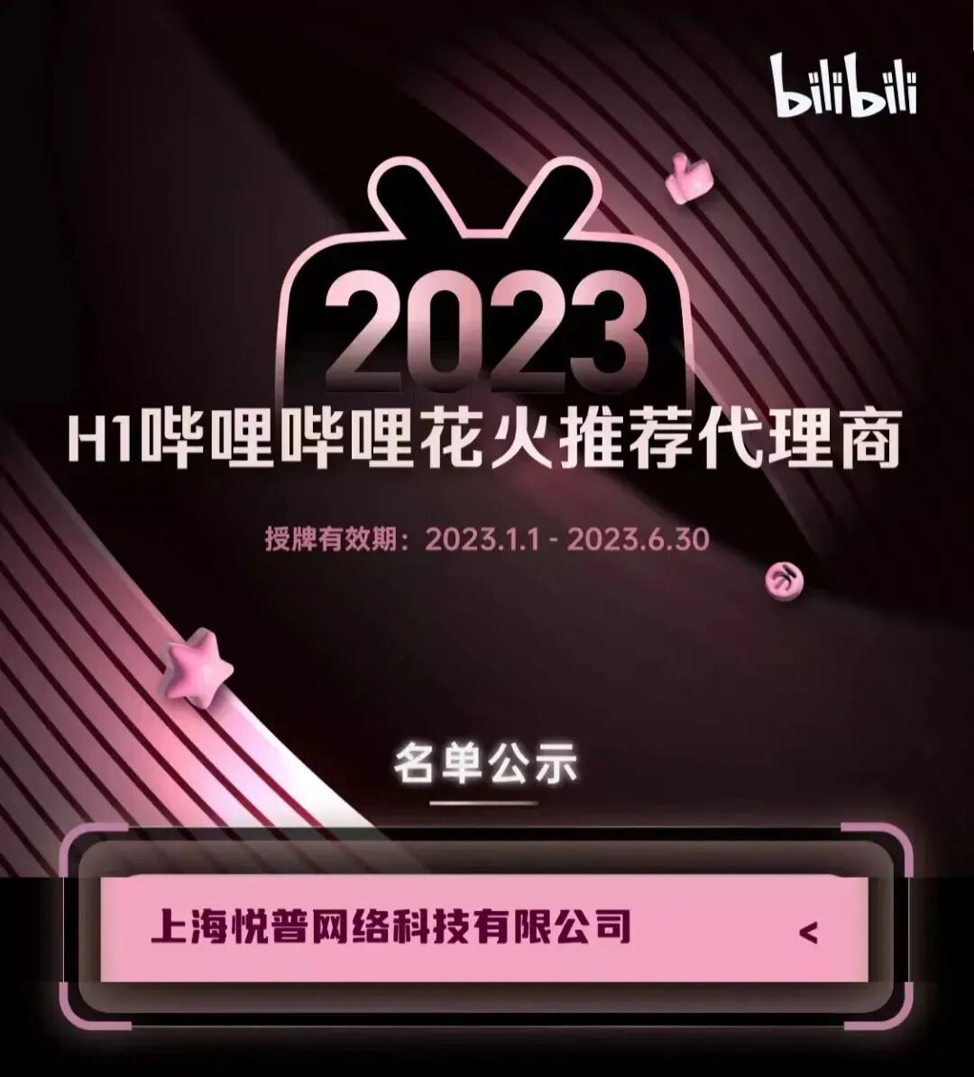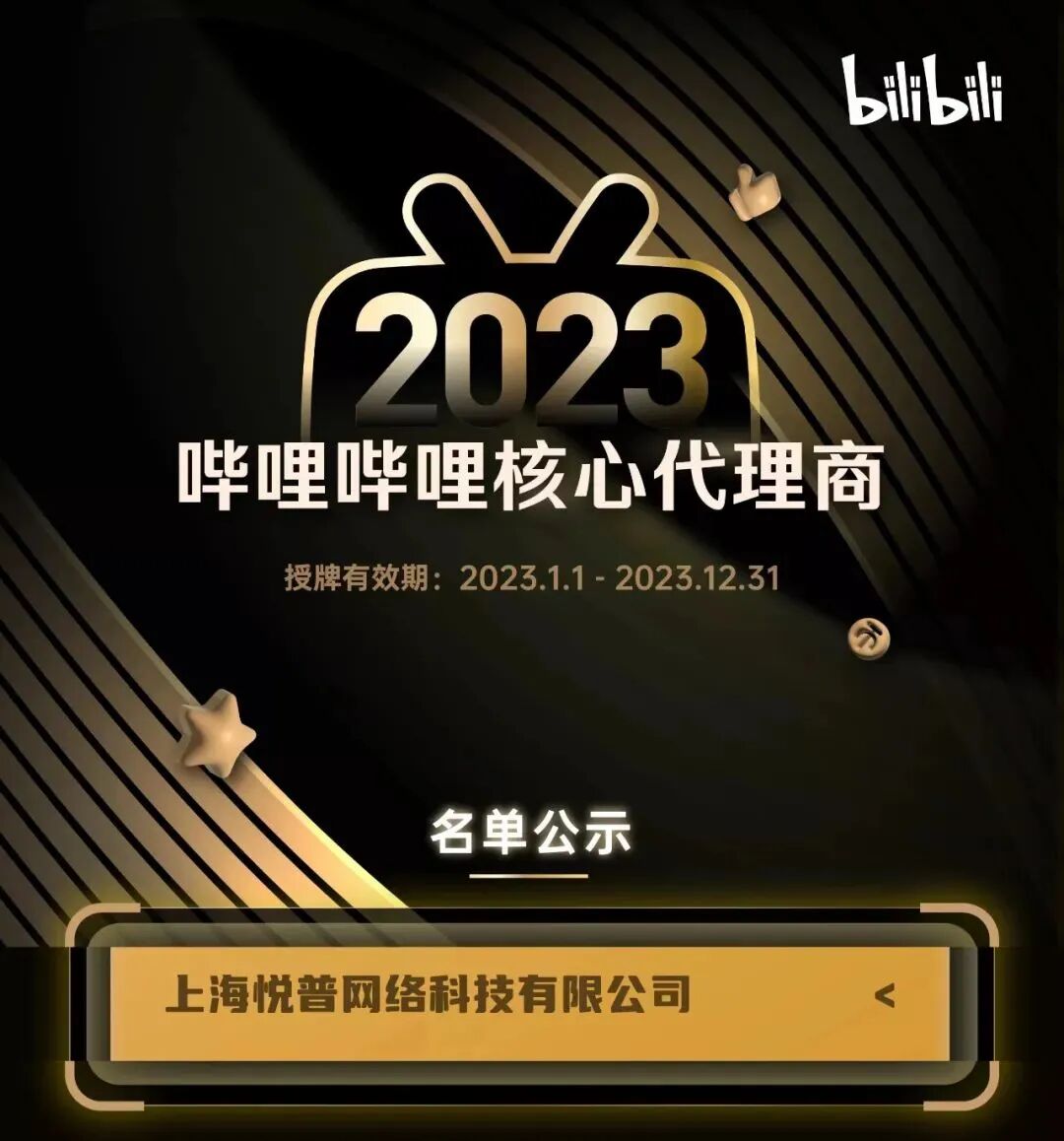 3月20日,B站正式公示2023年初优质代理商名单。基于市场合作需求,今年优质代理商被划分为四大类型:拥有全链路整合营销能力的核心代理商、在垂直行业有领先经验的行业授权代理商、花火平台上拥有优质商誉的花火推荐代理商、在带货领域有突出表现的带货推荐代理商。9323彩集团执行会长企业——悦普集团成功斩获「2023哔哩哔哩核心代理商」和「2023H1哔哩哔哩花火推荐代理商」。